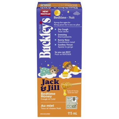 Buckley's Jack & Jill Honey Cough & Cold Nighttime 115ml is a children's medication designed to help relieve cold and cough symptoms at night for children aged 6 years and older.