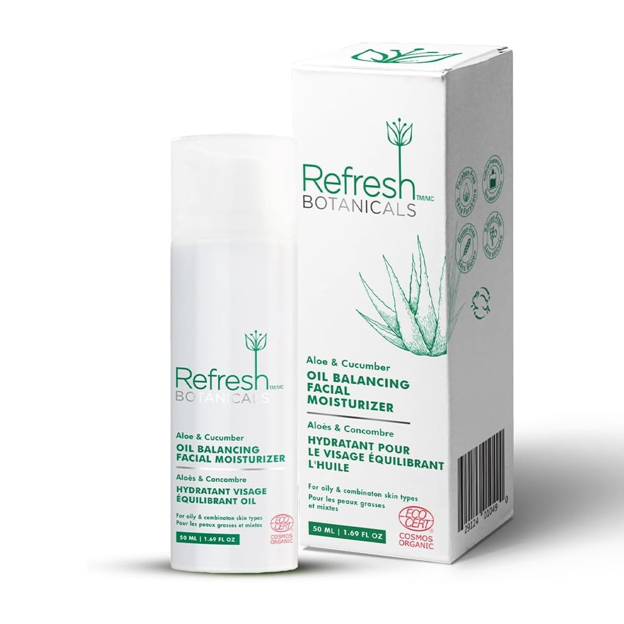 Refresh Botanicals Aloe Daily Facial Moisturizer is formulated for acne prone skin. This top selling natural facial moisturizer is a Canadian favourite that leaves your skin calm and balanced. Our proprietary blend of aloe, cucumber extract and cornflower water not only help to soothe and calm irritation, but also diminishes the appearance of acne scarring.