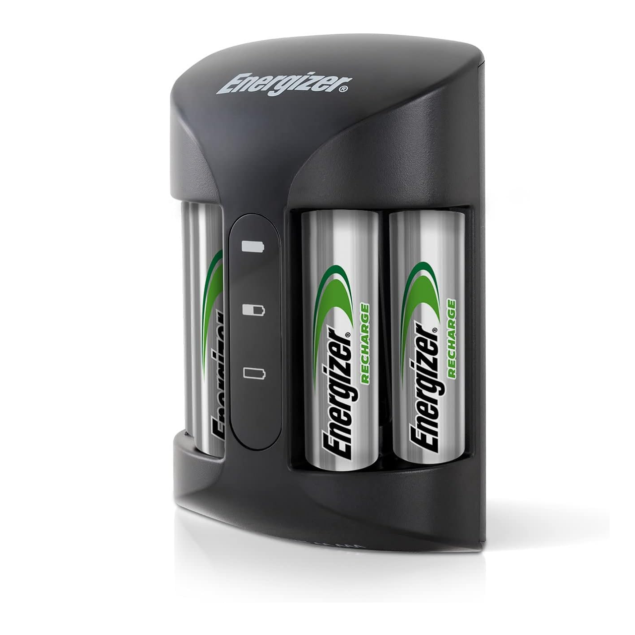 Conveniently charges 4 aa or AAA NiMH rechargeable batteries at the same time.3-5 Hour charge time with auto shutoff to prevent overcharging and battery damage. A red light means that charging has started, and you will hear an audible beep when charging begins. A yellow light appears when charging is 50 percent complete and charging is continuing. A green light means charging is complete, and the batteries are 100 percent full. You will hear an audible beep upon completion. If a bad battery is detected, a red x will illuminate, and the charger generates a repetitive audible beep upon detection.