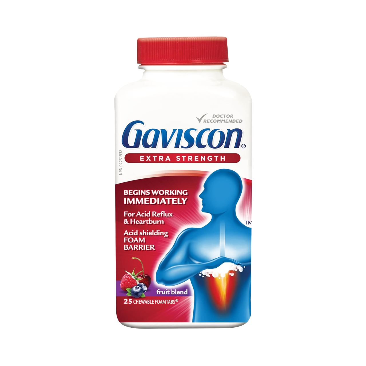 Gaviscon Extra Strength Chewable Foamtabs provide immediate relief from heartburn, acid reflux, and GERD. It forms a protective foam barrier to block acid reflux, offering long-lasting relief. Free from aluminum, lactose, and gluten.