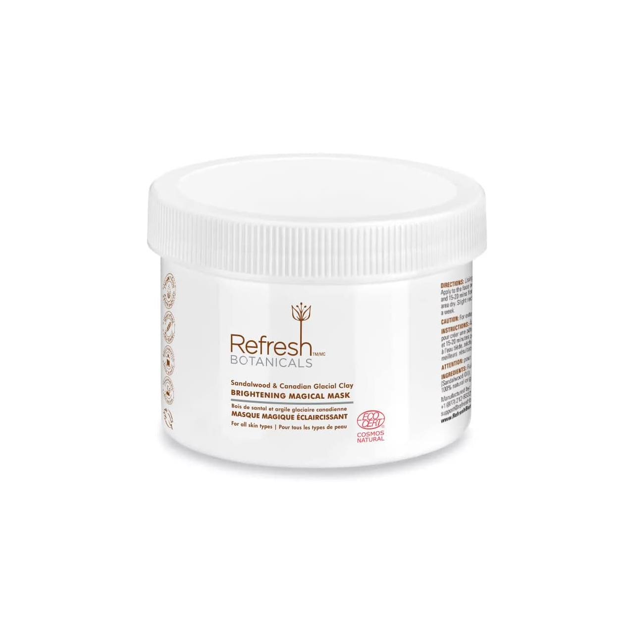 A 100% organic clay mask fortified with 40 Active Minerals and boosted with pure Sandalwood and Canadian Glacial Clay that detoxifies and brightens the skin for a naturally radiant look and feel. This brightening clay mask from Refresh Botanicals comes with Indian Sandalwood and Canadian Glacial Clay! It is specifically formulated for acne prone skin. Suitable for use as face and body clay mask, wrap, scrub and mineral bath and brings radiance to your skin with its significant skin brightening, anti-aging, anti-inflammatory, gentle detoxifying properties.